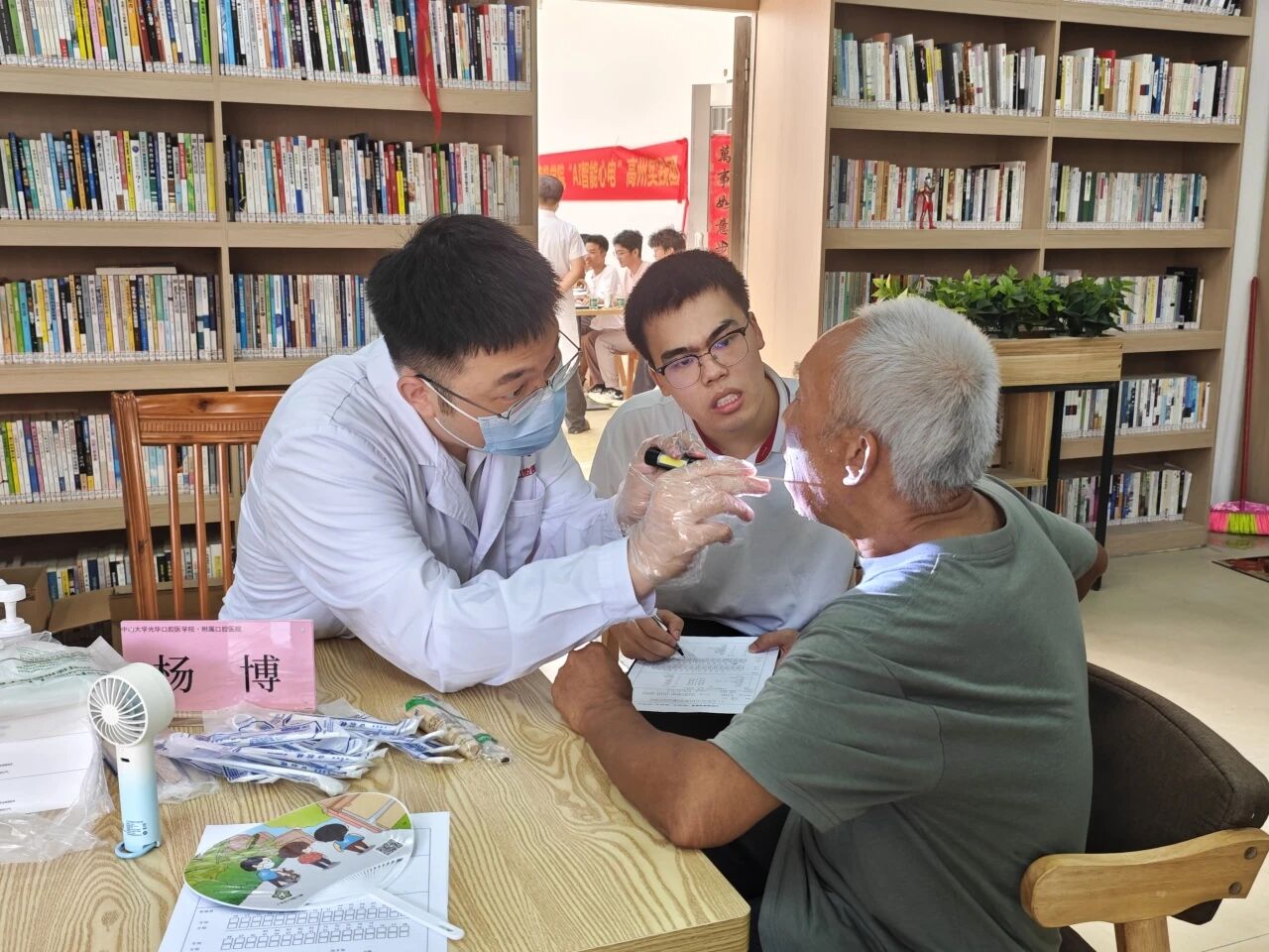 实践团由院长陈莉莉教授带队,行政事务部傅海君主任,青年教师专职辅导员、牙体牙髓病科黄舒恒,修复科杨博以及急诊综合科曾秉辉医师担任专业指导,团委黎琳、杨果、王玉文老师以及本硕博学生38人组成,发挥口腔医学专业知识技能,凝聚光华青年志愿服务力量,护航基层群众口腔健康。