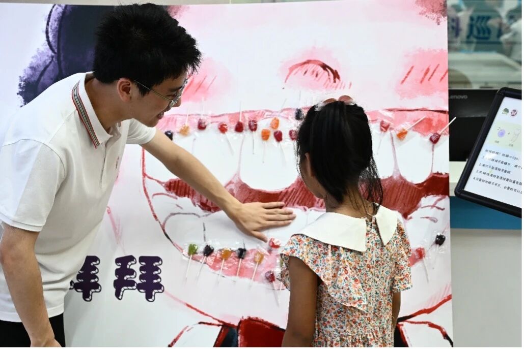 科普展板前围满了好奇的小朋友,交互式科普海报将抽象的口腔健康知识变得通俗易懂。趣味问答环节更是热闹非凡,小朋友们积极举手抢答,答对的小朋友还能获得儿童牙膏牙刷套装,在欢乐的氛围中轻松掌握了口腔健康知识。