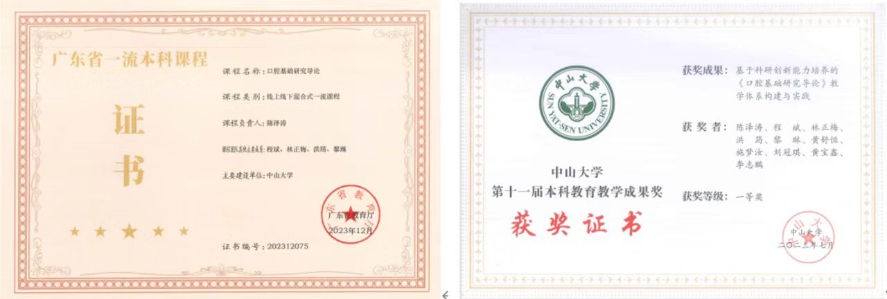 教师团队建设:主编/参编国家级规划教材10余部,主持省部级教改项目4项,发表SCI教学论文多篇;获全国口腔医学青年教师授课技能展示一等奖、全国高校教师教学创新大赛三等奖等奖项。