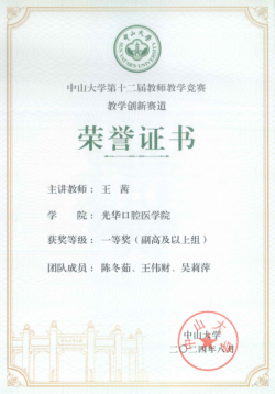 教师团队建设:课程负责人主编全国高等学校“十四五”规划教材《口腔预防医学》,团队成员发表教学论文5篇;获中山大学第十一届教育教学成果奖。