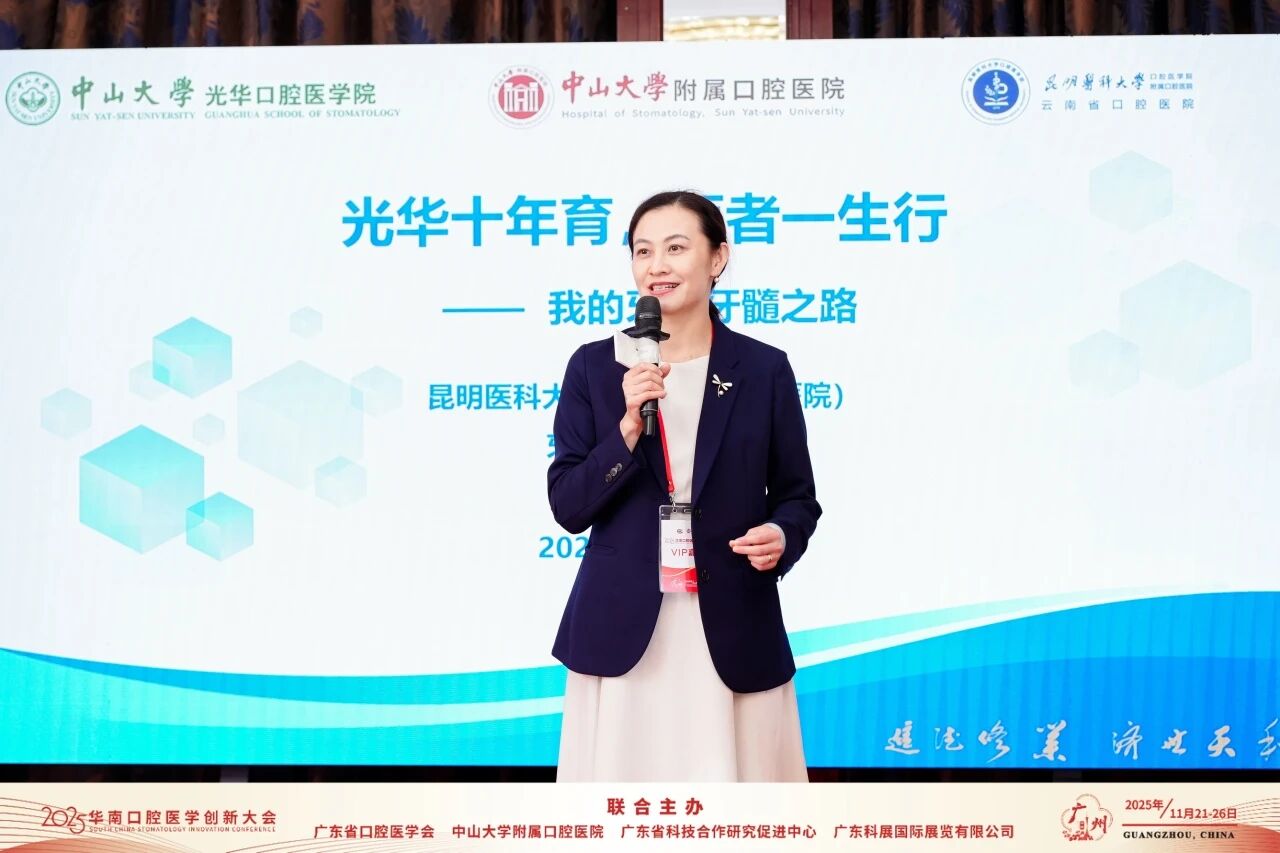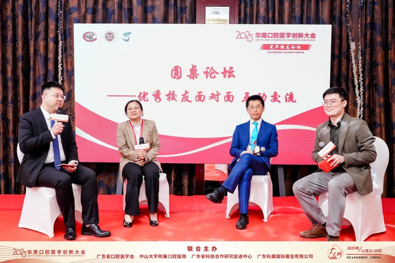 珠江潮涌,共叙情长。11月23日下午,2025华南口腔医学创新大会——“光华校友论坛”在广州顺利举行。来自五湖四海的杰出校友荣归母校,与学院领导、青年医生及学生代表欢聚一堂,共叙情谊,共话成长,共绘未来。论坛由光华口腔校友会秘书长黎琳主持。
